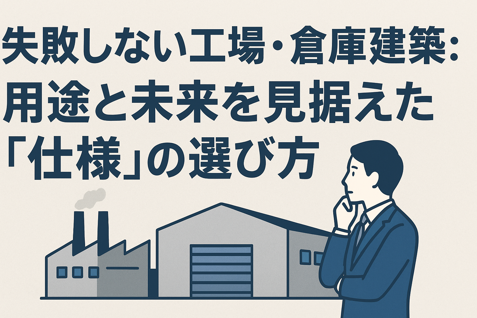 失敗しない工場・倉庫建築:用途と未来を見据えた「仕様」の選び方 工場や倉庫の建築を検討する際、「費用」や「工期」と並んで非常に重要なのが、「構造」と「機能性」といった建物の仕 ....続きを読む
